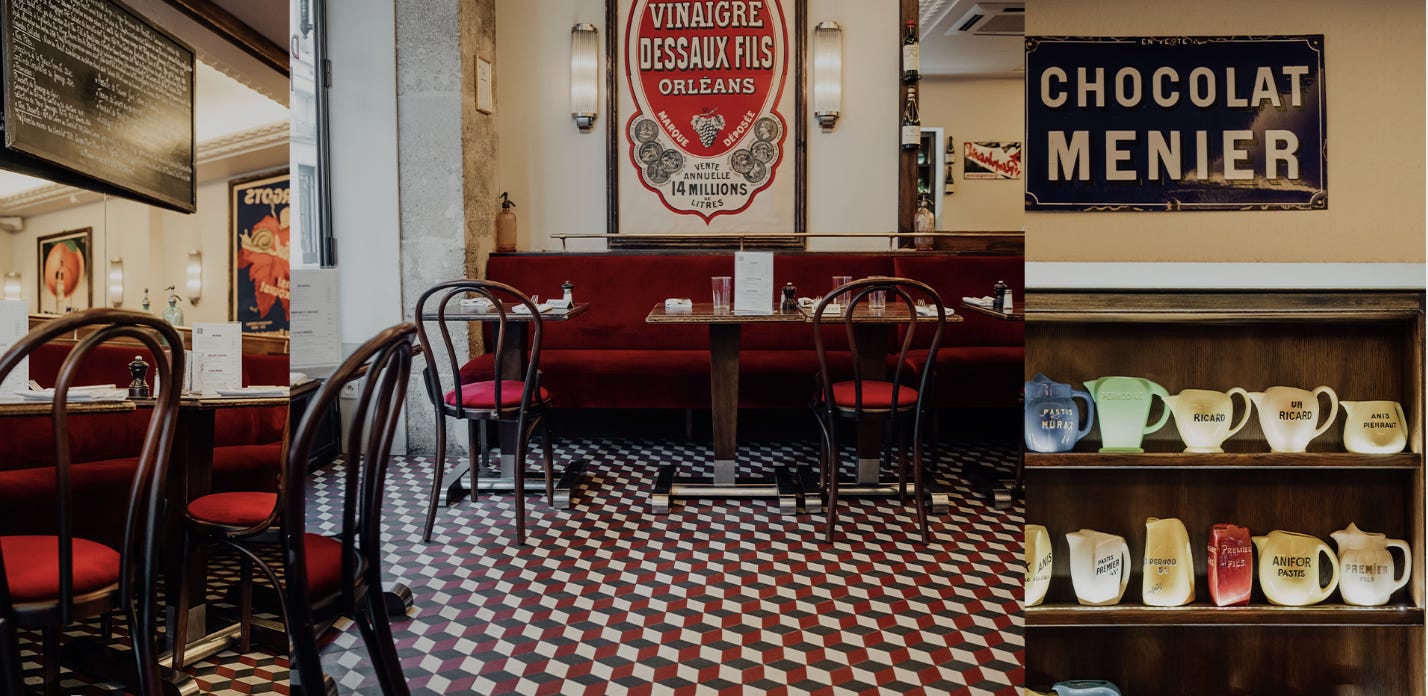 Les Antiquaires. This is a sweet spot for a coffee mid-morning or a glass of rosé with some frites (and/or oysters) at whatever time suits you. It gets its name from the area, which is filled with antique stores. If at all possible, sit outside and people watch. This place does get “bondé” (mobbed) at meal times and when the weather is really nice, but it’s not as insupportable (intolerable) as Café de Flore has become.