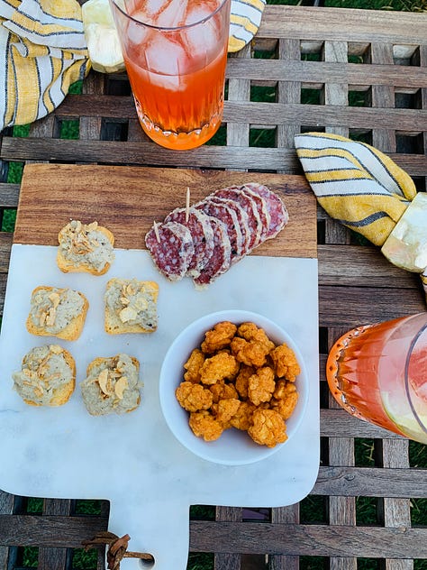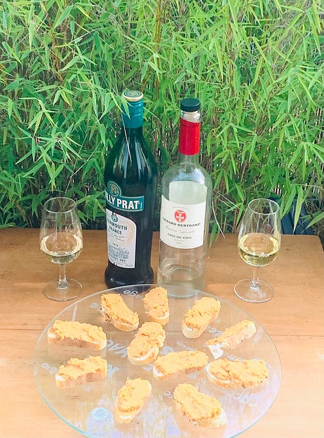 The point, if you want to really do l’apéro French-style, is to keep it small and light. No giant dip bowls, no huge slices of bread. One or two small drinks with little bite-sized things that leave room for dinner.