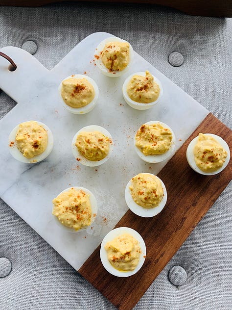 Des oeufs mimosa. The French version of deviled eggs. Yum!