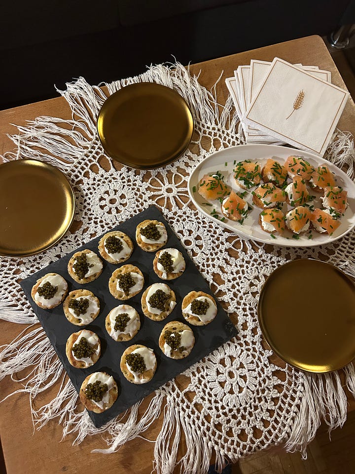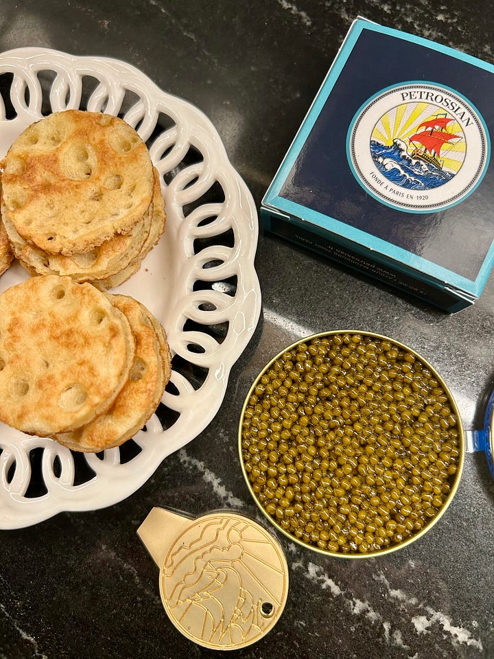 Earlier that week we had a neighbor over for l’apéro and we splurged with a tin of caviar from Petrossian and a special bottle of Bourgogne blanc—un Savigny-lès-Beaune premier cru.